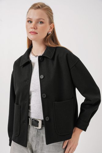 Kadın uzun kollu yaka detaylı düğmeli ithal krep bluz